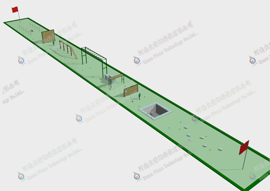 百米障碍赛可以用来训练队员的体能、胆量和战术技巧。所有团队成员必须逐个通过,难以完成的项目,相互之间可以搀扶、托举协助,不可直接背过、报过或扛过。