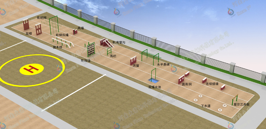 特战三百米障碍是武警特战队员的体能科目之一,在全装快速通过双绳水池、轮胎墙、软梯斜绳、高栏、连续矮墙、水平悬梯、斜墙壕沟、高墙等十五种障碍过程中,对特战队员在实际战斗行动中所需要的奔跑、跳跃、攀越、支撑、平衡和钻爬等技能进行全面考验。